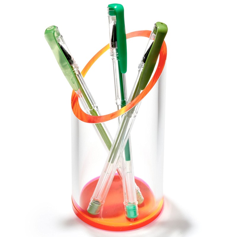 The Pencil & Pen Holder is well designed. It's clear acrylic with red, orange & pink neon highlights for fun!