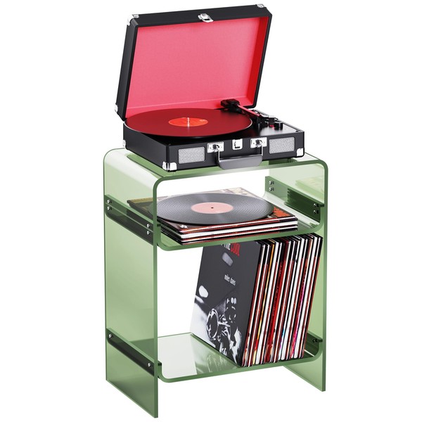 Acrylic Record Player Table with Storage Shelf, Clear Side Table Nightstand (Green, Large)