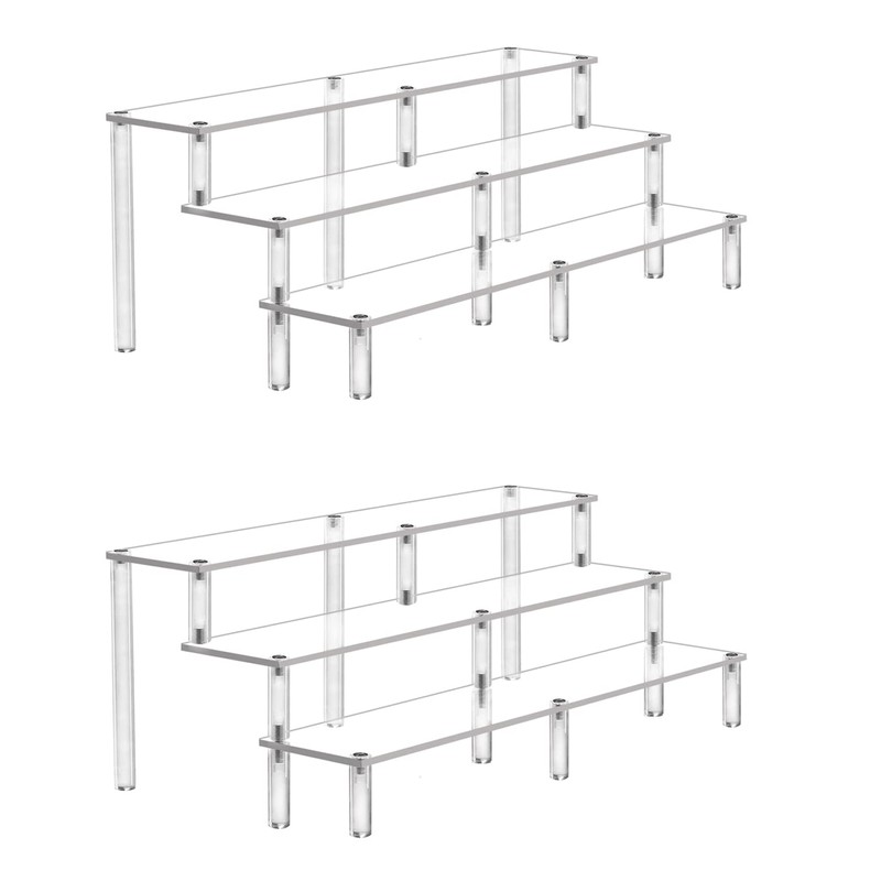 Acrylic Riser Display Shelf,3 Tier Display Riser for Amiibo Funko POP Figures,Display Stand Large Risers for Display Cupcake Perfume Organizer Cologne Makeup Collection Countertop Tabletop(2 PACKS)