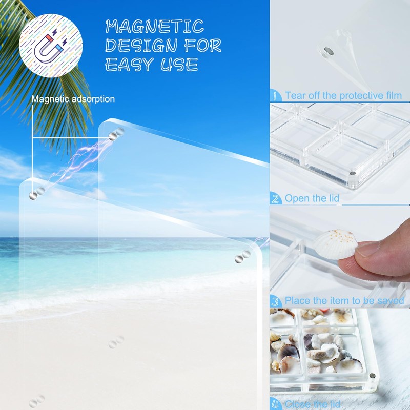 - Capture Precious Memories: Transform your seaside treasures into cherished keepsakes with our Magnetic Seashell Display Box. Store the small shells you collect during your travels and create a stunning souvenir of your adventures. (Please note: Seashells are for display only and are not included.)