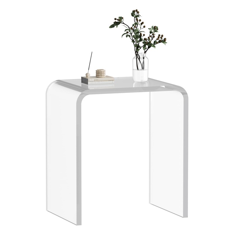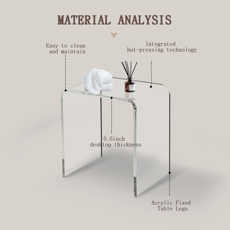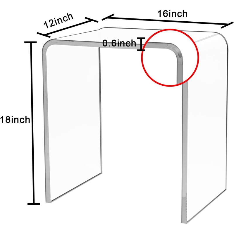 - 1. 【Premium Acrylic Shower Stool】 Crafted from 100% thick acrylic (0.6") with 92% transparency, this modern shower bench (16"W x 12"D x 18"H) resists yellowing and maintains gloss. The clear bathroom stool blends invisibly in homes or commercial spaces like spas and cafes