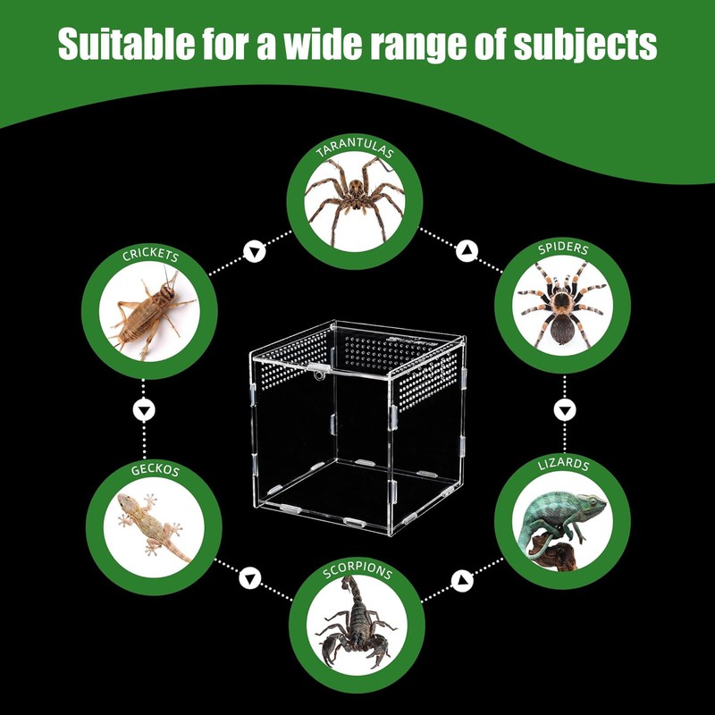 - 360° transparent design: jumping spider terrarium is made of high-quality, clear acrylic, which offers you a 360° transparent panoramic view of your pet from any angle (note: the acrylic plates are transparent, please remove the protective film before use).