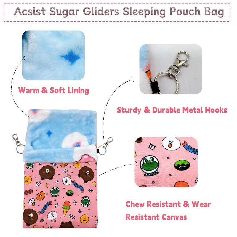 Acsist Sugar Gliders Sleeping Pouch Bag Hamster Cotton Hanging Flannel Warm Bed Hideout with Hooks Glove Small Pet Nest Bed for Chinchilla Squirrel Guinea Pig,Pink
