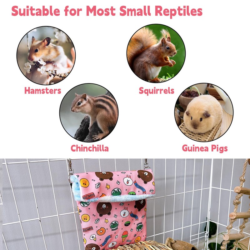 • 【Large Size】: The sleeping bag measures 7.87 inches in length and 11.81 inches in height, equipped with two hooks and a glove for easy hanging on a cage. Suitable for various small pets such as hamsters, squirrels, gerbils, and guinea pigs. Allow your pet to play, sleep, and rest comfortably on it.