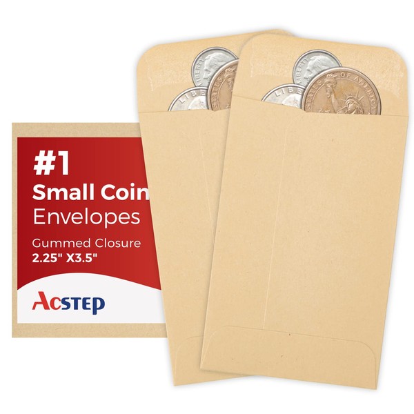 ACSTEP 100 Pack #1 Paper Kraft Seeds Envelopes 2-1/4 X3-1/2, Small Coin Envelope 2x3 For Key, Tip, Seeds Packets, Self Adhesive Water Glummed Mini Tiny Envelopes