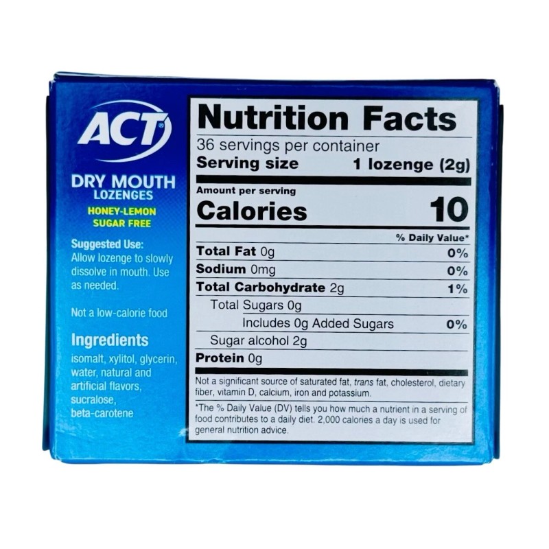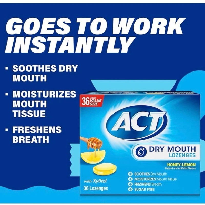 Keywords: ACT, Dry Mouth, Lozenges, Honey Lemon, 36 Count, Soothes, Moisturizes, Sugar Free, Fresh Breath, Xylitol, Oral Health, Dry Mouth Relief, Throat Lozenges, Mouth Moisturizer