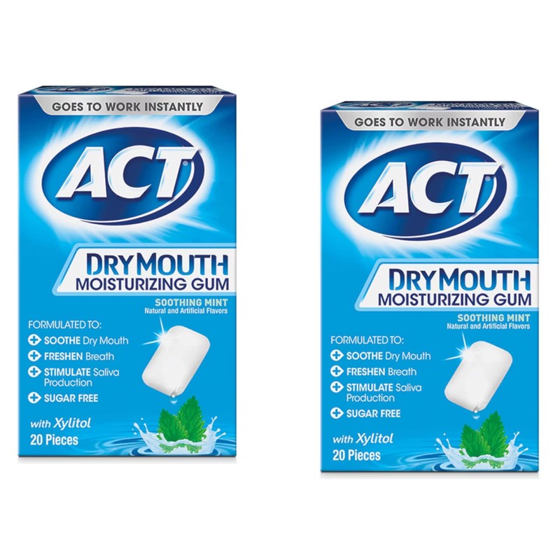 ACT Dry Mouth Moisturizing Gum, Soothing Mint, Sugar Free, 20 Count (Pack of 2)