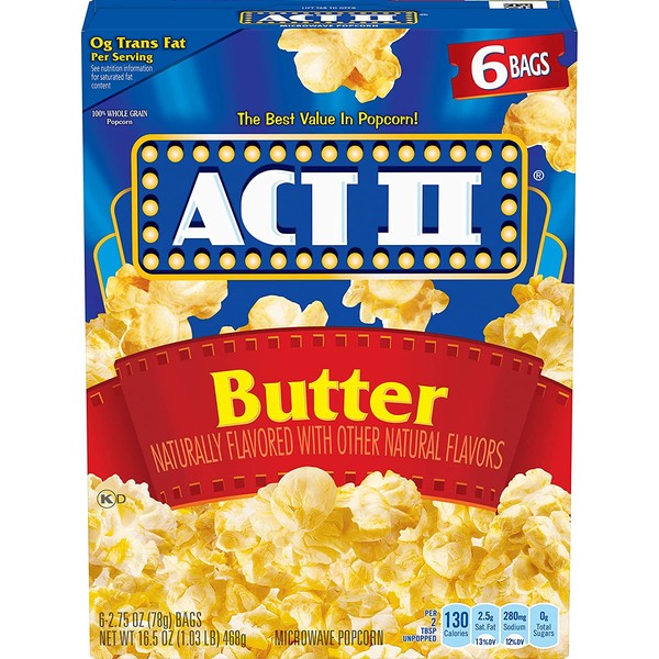 ACT II Butter Microwave Popcorn, 6-Count 2.75-oz. Bags (Pack of 6)