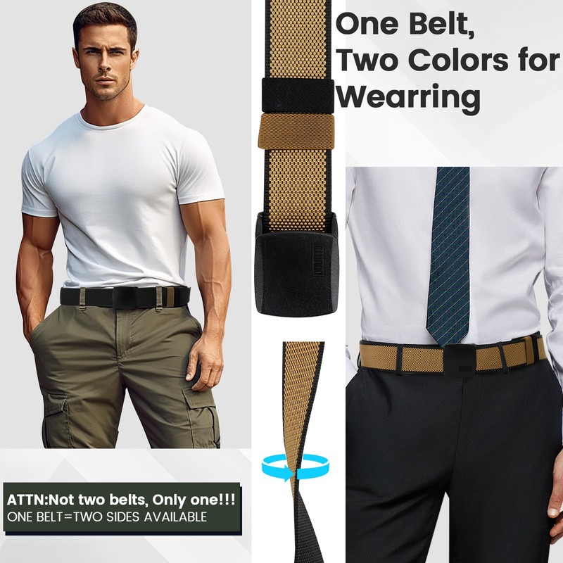 - VERSATILE DESIGN: Reversible nylon web belt with two color options in one belt - features a sleek black side and a stylish brown side for multiple outfit combinations