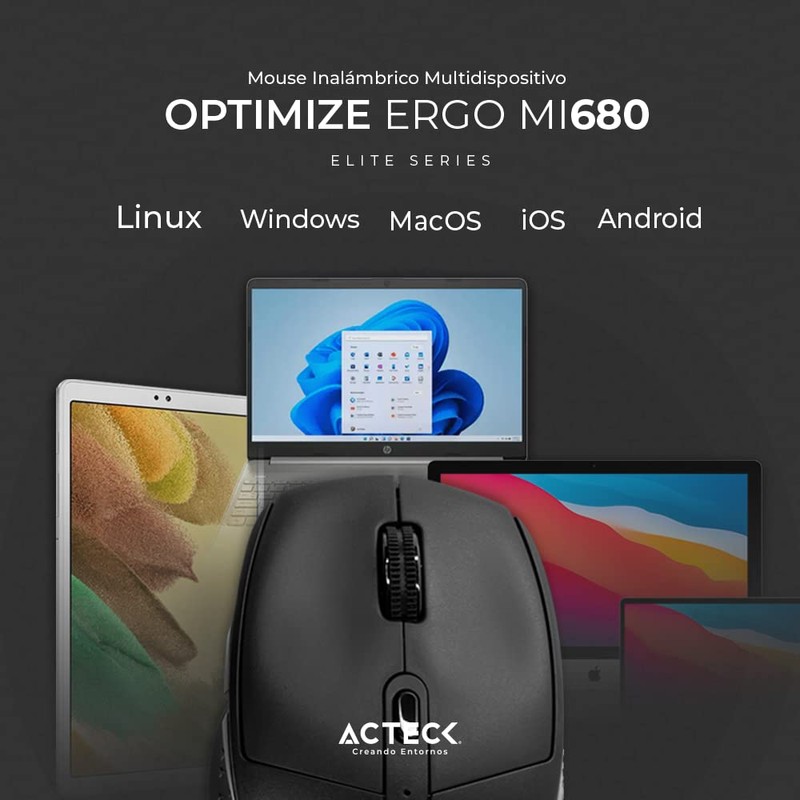 Acteck Mouse Multidispositivo Optimize Ergo MI680 / 2.4 GHz + 3 Modos Bluetoo...