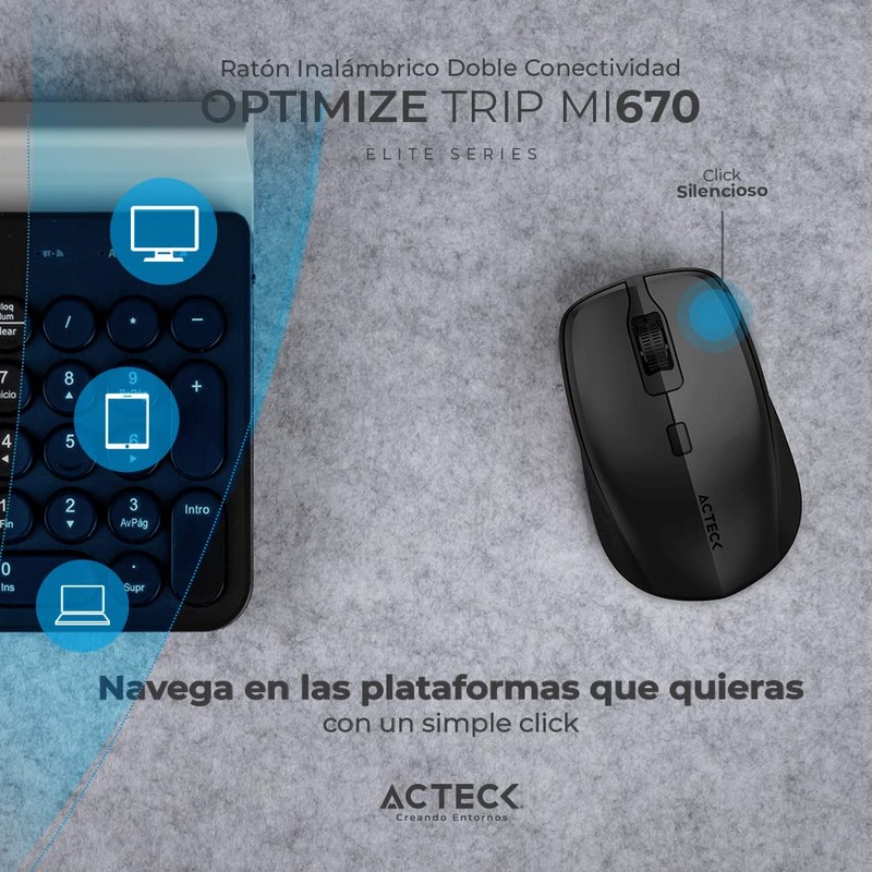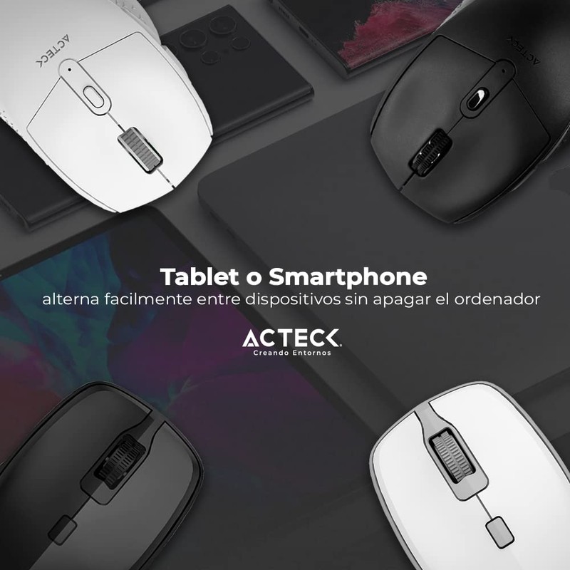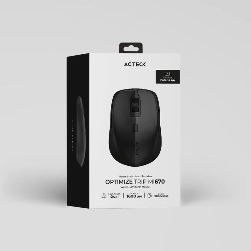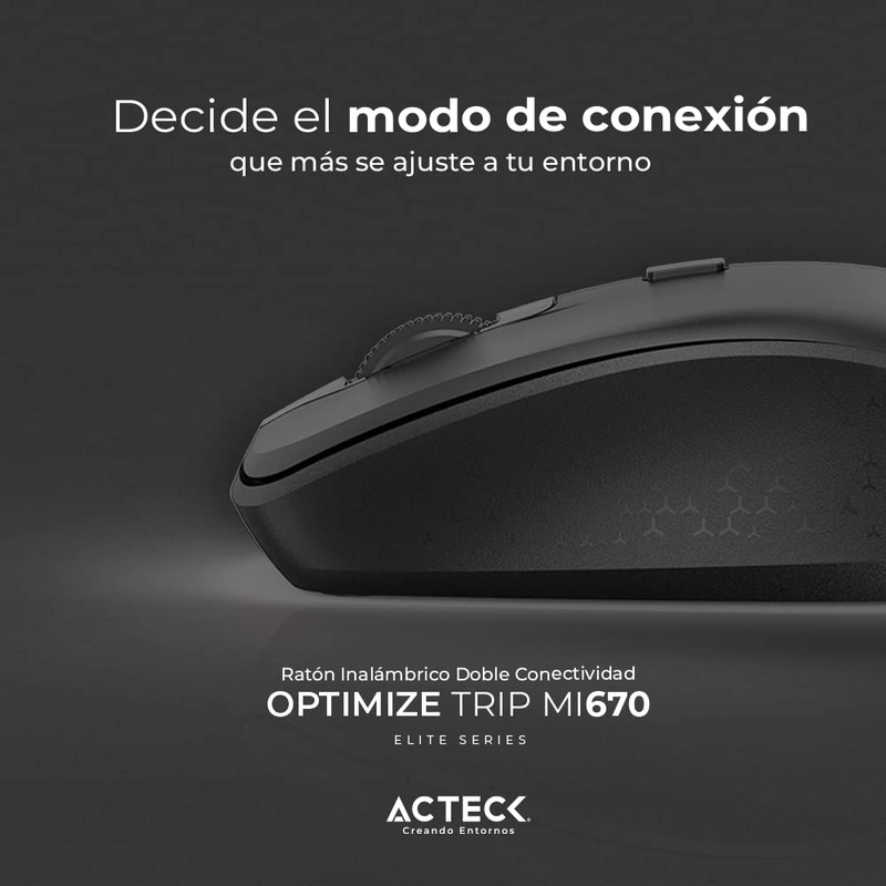 Acteck Mouse Multiplataforma Optimize Trip MI670 / 2.4 GHz + 2 Modos Bluetooth de 1600 dpi s a + 4 Botones + 1xBat AA Incluida Negro Elite Series