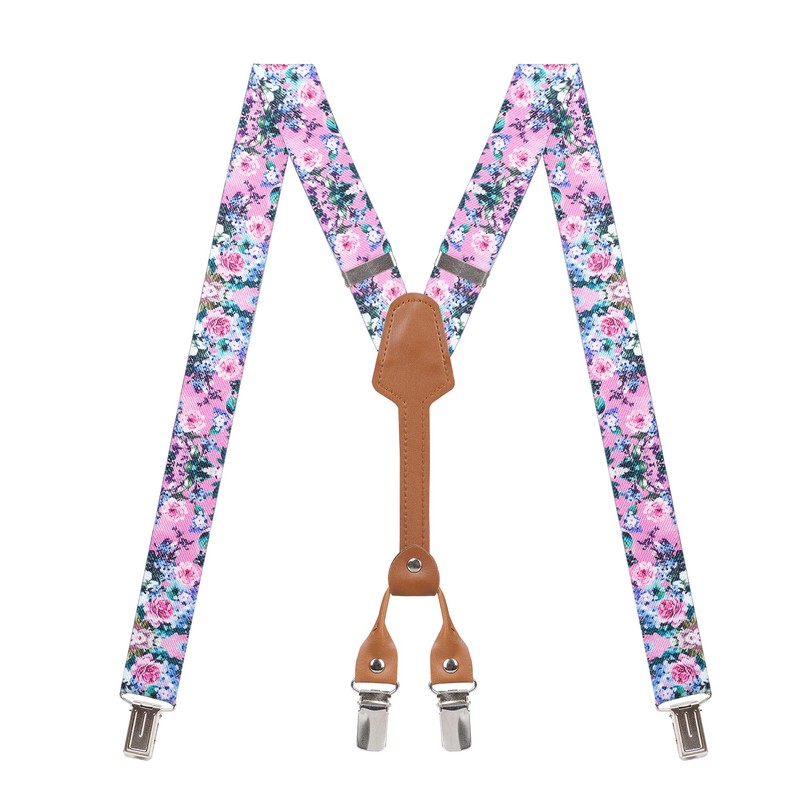 Action Ward Women's Suspenders - 1" Width - Y Back 4 Clip Skinny Ladies Suspenders (Floral 5)