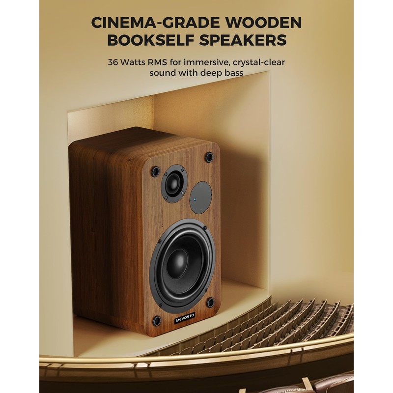 - Newest Wireless Audio Technology– Upgraded to BT 5.4 version, MEVOSTO bookshelf speakers offer faster pairing, extended range, and ultra-low latency, delivering high-fidelity sound in any space. Easily compatible with iPhone, Android, tablet, PC, or Mac for seamless device connectivity.