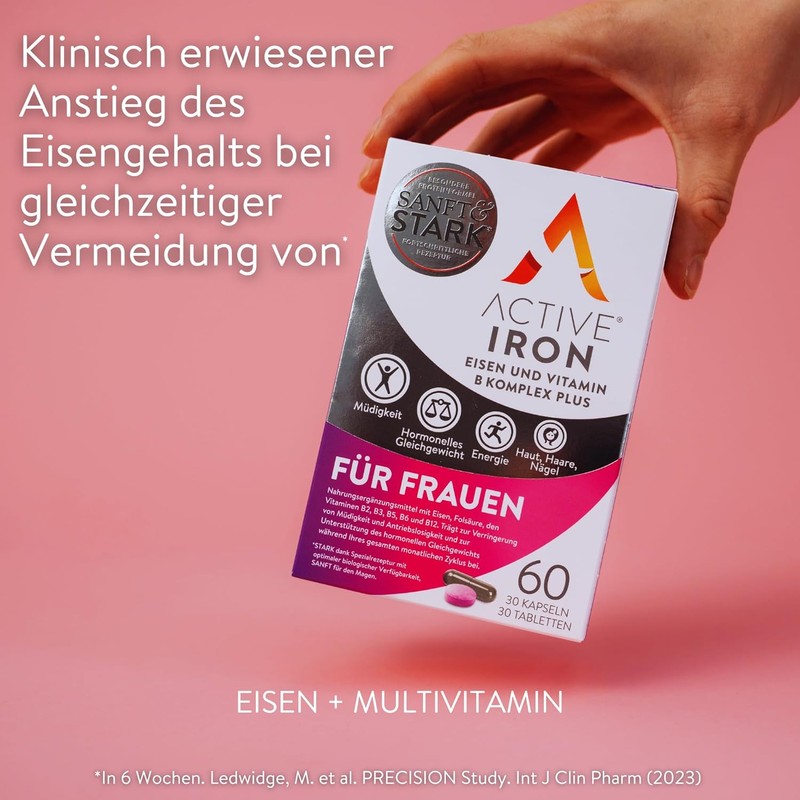 - Compatible and strong iron tablets: thanks to the targeted release, Active Iron & Vitamin B Complex Plus is a well tolerated and strong iron supplement for women. Active Iron's groundbreaking protein formula is so digestible that this iron supplement can be taken on an empty stomach, because it works with your body and provides strong absorption when you need it.