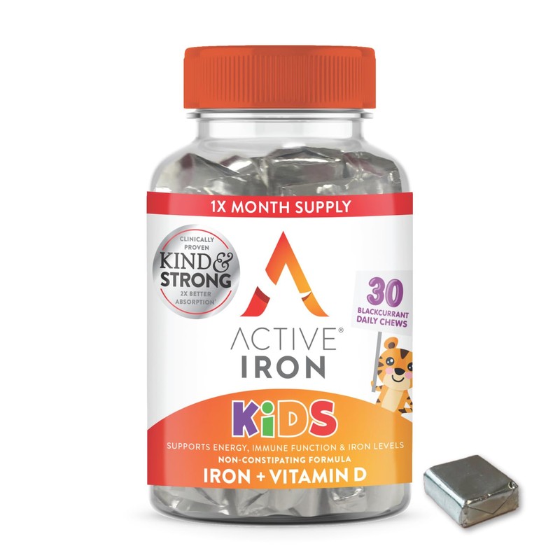 Active Iron Kids Chews, with Iron & Vitamin D, Blackcurrant Flavour, 30 Day Supply