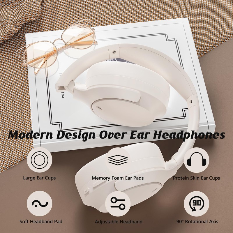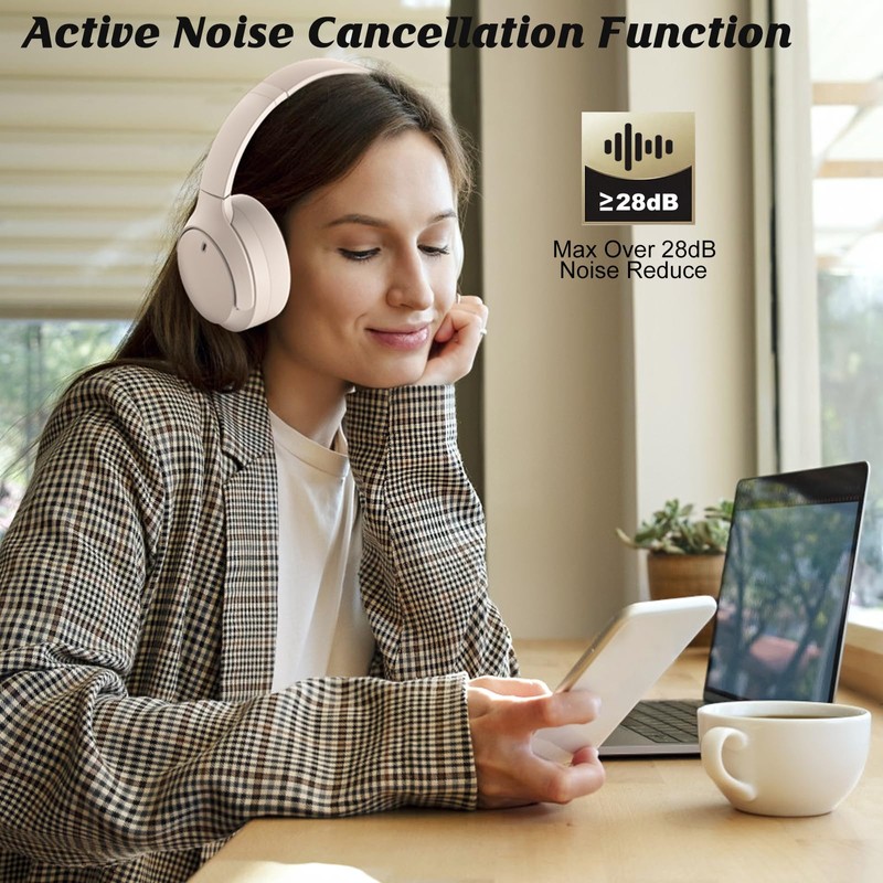 Active Noise Cancelling Headphones, Bluetooth 5.3 Version, Wireless Headsets, 55H Playtime, ANC Mode Over 28dB Noise Reduce, CVC 8.0 Mic, Hi-Fi Audio Sound, USB-C Charge, Protein Skin Over Ear Cups.