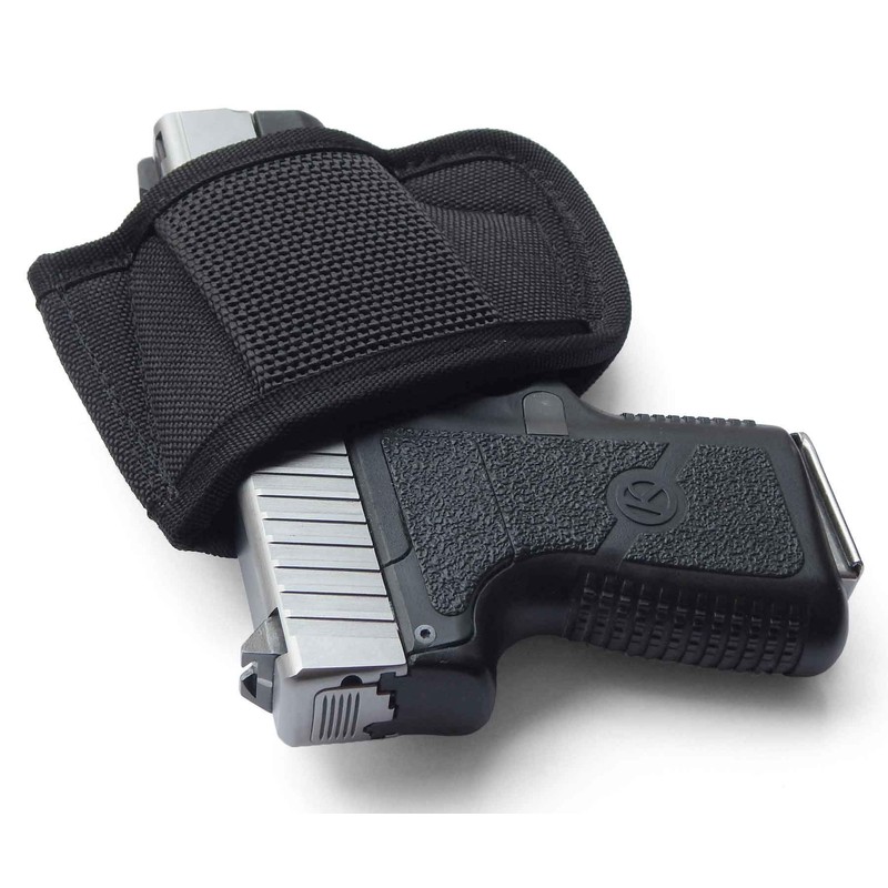 This Compact Belt Slide Holster provides a comfortable, secure and concealed carry for multiple guns. Carries your gun between the belt and your pants. The open top design provides a smooth fast draw, plus the open muzzle lets you carry multiple guns with different barrel lengths. The pressure from your belt keeps your gun very secure, while pushing it close to your body for great concealment. Constructed from waterproof closed-cell foam padding for a comfortable carry and lined on both sides with Cordura nylon for durability. If you want to conceal a large gun, but don’t want an in-the-pants holster, then the compact Belt Slide holster is an excellent choice. Fits most small to large autos and J-Frame revolvers. Fits belts up to 1½”. Comes in right or left hand draw. Color: Black. Made in the USA. Sizes: 22-25K: Ruger LCP, Kel- Tec P-3AT 22-25CT: Ruger LCP, Kel-Tec P-3AT with Crimson Trace Laser 22-17: Glocks, S&W M&Ps, Taraus Millamium Pros or Small J-Frame Revolvers 2 Inch Barrel 22-195: 1911 autos, Kahr, Walther PPKs 22-26: Springfield XD, Sig autos