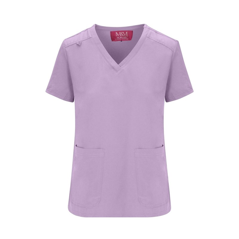 - TOP: V-Neck, Short sleeve, 2 Lower pockets, ID Badge Loop, Double-needle stitching at seams, side vents.