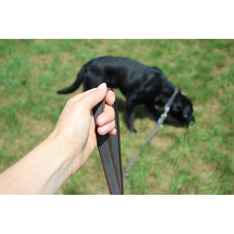 - The flat webbing sits comfortably in the hand, does not cut in and is very non-slip and easy to grip even when wet thanks to the woven rubber threads, even when the dog pulls.