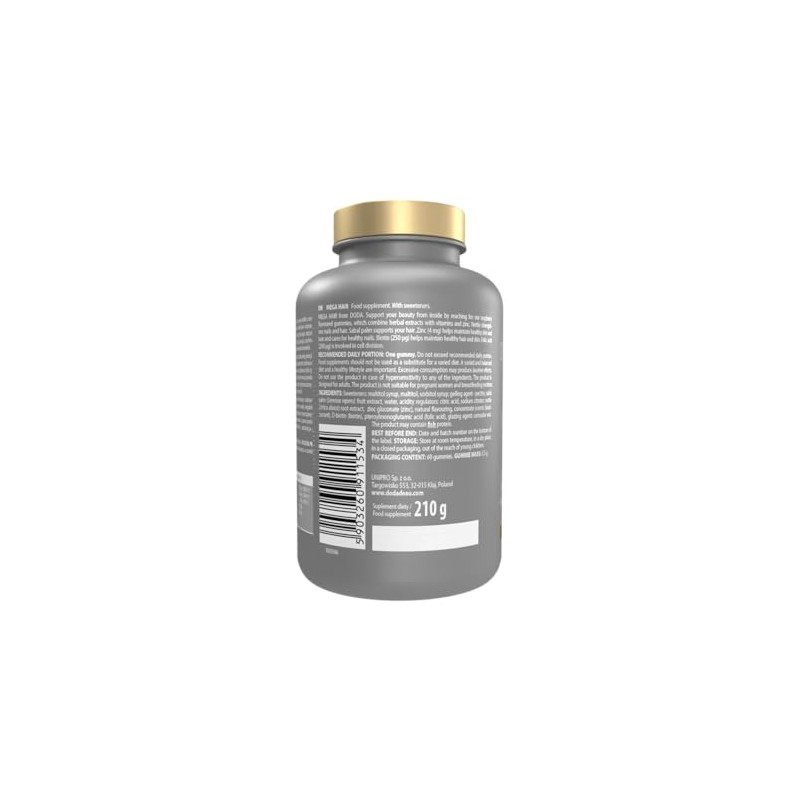Activlab DODA D'EAU FOODS Mega Hair – Haar-Vitamin-Gummibärchen mit Biotin, Zink, Folsäure, Brennnessel & Sägepalme – Zuckerfrei, Himbeergeschmack, 60 Stück
