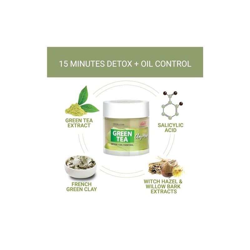 Activs Crystal Clear Green Tea Mask l Detox + Oil Control l For Oily Combination & Acne Prone Skin l With Salicylic Acid l Deep Pore Cleansing | Halal Certified & Vegan