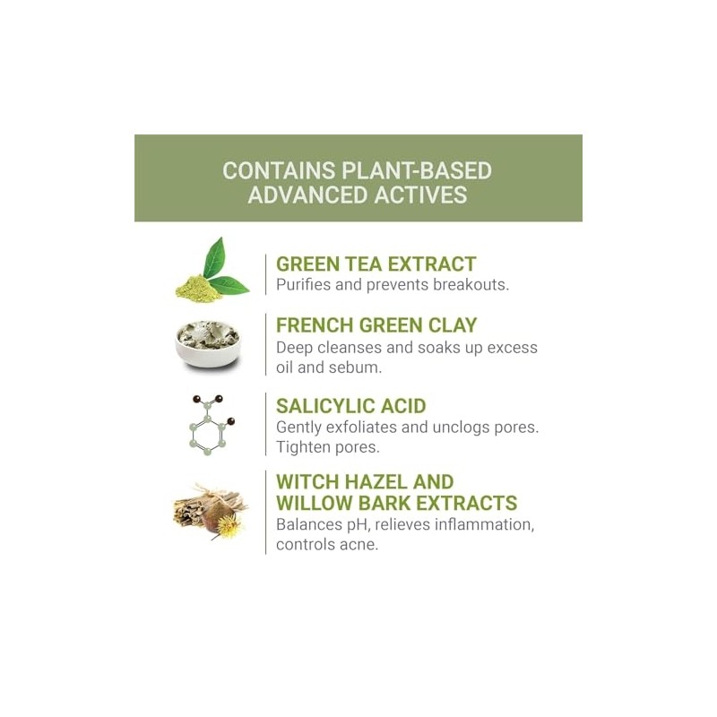 - Deep cleanses by drawing out dirt pollution & impurities. Soaks up excess oil and acne-causing sebum without drying the skin. Salicylic Acid0.1% w/w: Gently exfoliates & unclogs pores by removing acne causing sebum. Tightens pores.