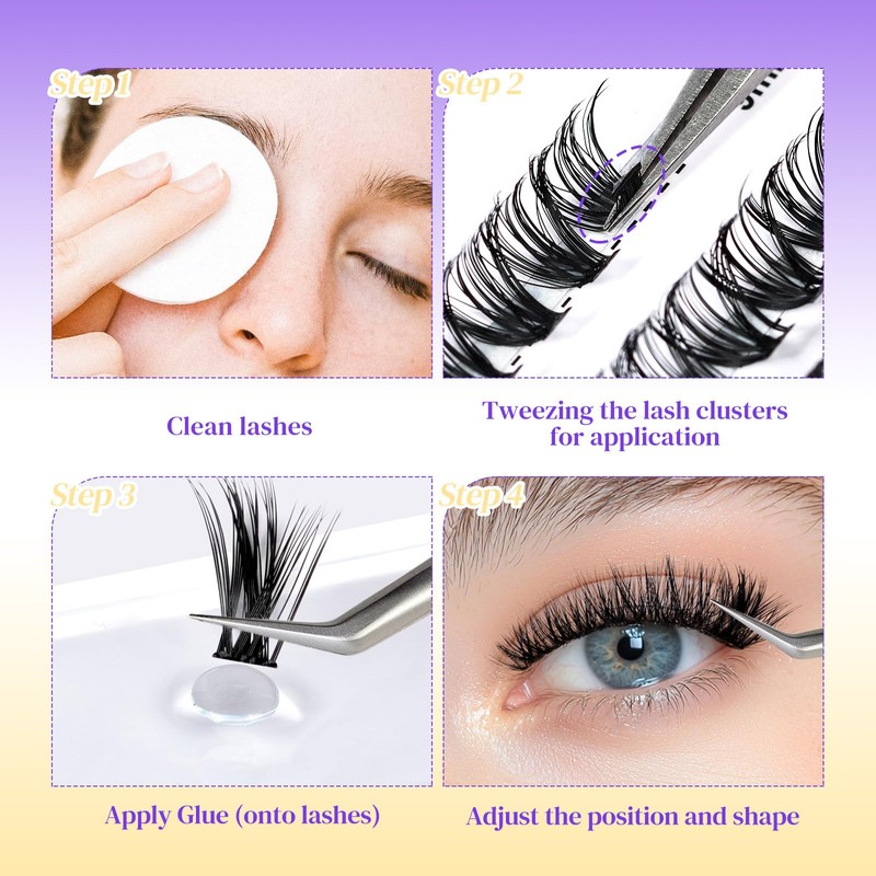 - Pro-Level Results, Beginner-Friendly: Effortlessly apply with any lash adhesive! The pre-separated clusters grip easily with tweezers, saving time and frustration. Even newbies can achieve salon-worthy lashes in minutes!