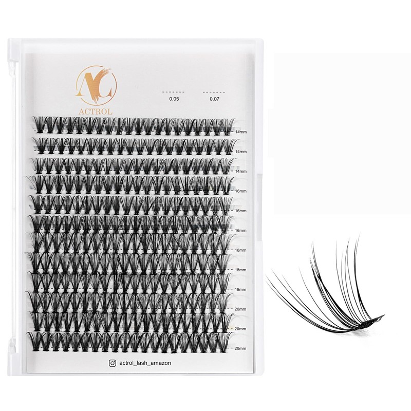 ACTROL Individual Eyelash Lashes Clusters 20D 0.07 14-20mm Mix D Curl - Natural & Bold Volume Lashes, Reusable DIY Lash Extensions for Customized Looks - Hypoallergenic & Cruelty-Free