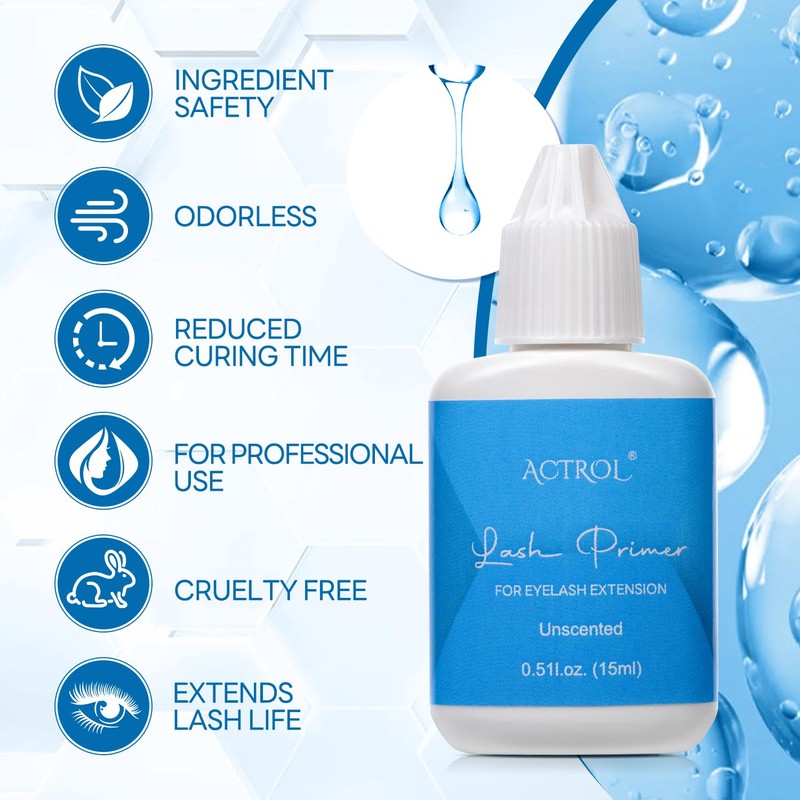 ACTROL Lash Primer for Eyelash Extensions Unscented Professional Lash Adhesive Eyelash Primer Easily Removes Proteins 15ml