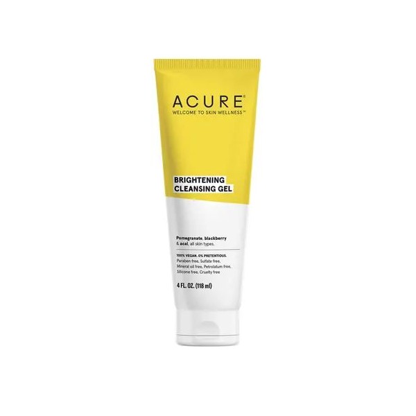 Acure Brilliantly Brightening Cleansing Gel Gel works on two levels it washes away dirt and oil as well as removes makeup to leave your skin radiant and refreshed.