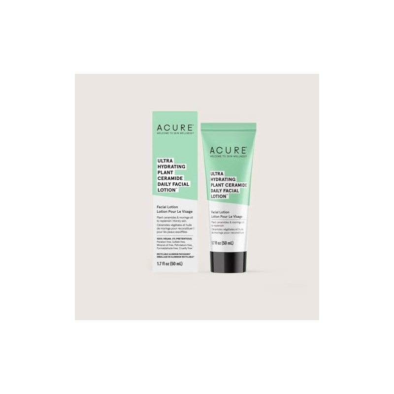 Acure Ultra Hydrating Plant Ceramide Facial Lotion - Morning Face Moisturizer for Deep Hydration, Skin Tone Balance - Made & Extract from Plant Ceramide, Niacinamide & Rice Bran Oil, 1.7 fl oz