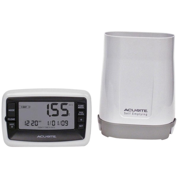 AcuRite Wireless Digital Rain Gauge with Self-Emptying Collector with Rainfall History, Alerts, and Current Date and Time (00899), Multicolor