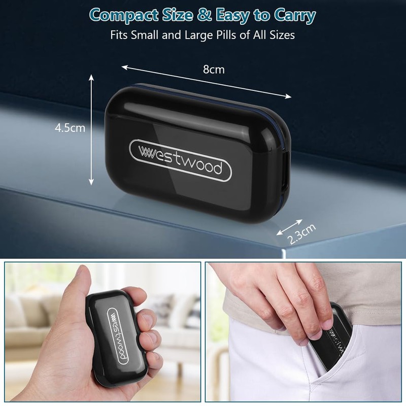 - 【Hochwertiger Pillentrenner】Der Pillentrenner besteht aus hochwertigem ABS und Edelstahlklingen, ist langlebig und 100 % lebensmittelecht. Das blickdichte Design schützt die Privatsphäre Ihrer Medikamente. Das stilvolle Erscheinungsbild stärkt den persönlichen Sinn für Mode und schützt gleichzeitig die Privatsphäre.