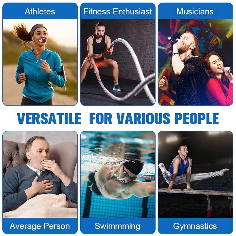 The compact and portable design of this breathing trainer allows you to use it anytime, anywhere. It can be used by adults, seniors, swimmers, athletes, singers, etc. Whether you're at home, in the office or on the go.