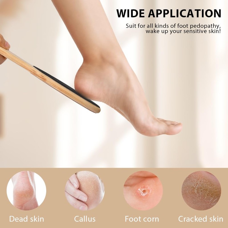 - High-quality foot scraper: remove calluses and the fine roughness of the surface can be easily removed. The solid wood handle is ergonomically designed, easy to grip, practical and durable.