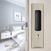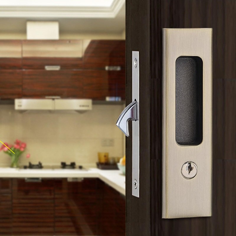 - Lockable design: solid knob inside, turn the knob to open and close the door, easy to use. Exterior unlock with key to prevent the door from being opened suddenly. Works on door panel thickness 35mm-52mm. The sliding door lock fits either left or right handed door.