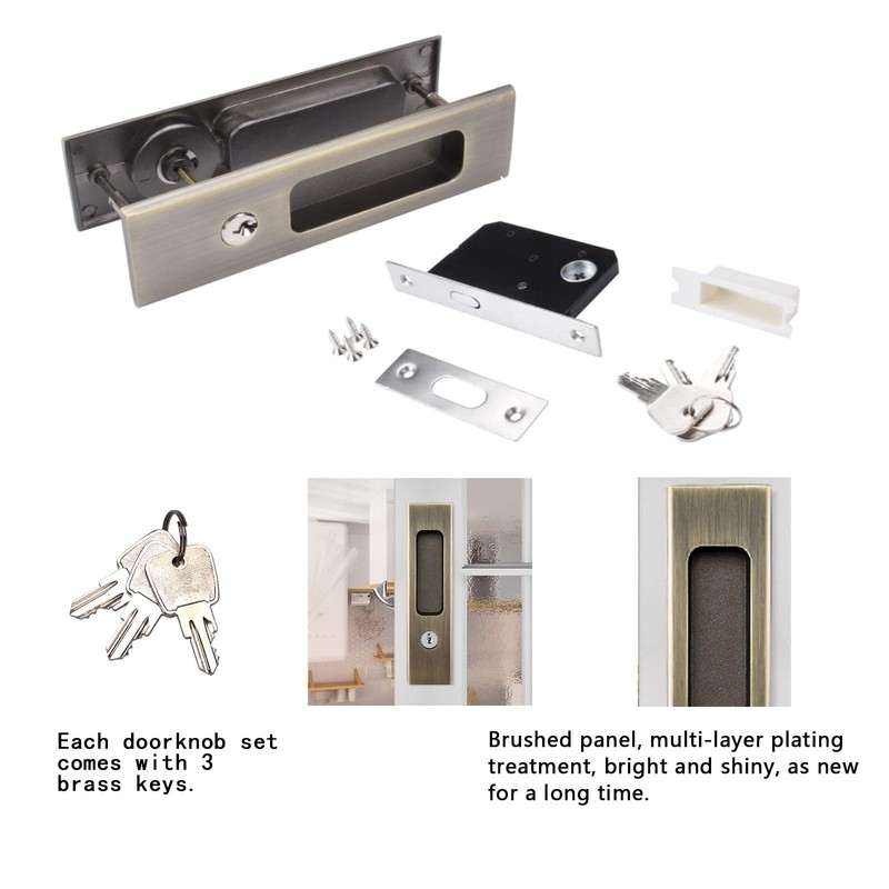 AcxdJnye 6.3” Privacy Pocket Door Lock Hardware with Key Double Barn Door Lock Furniture Hardware Sliding Door Mortise Lock,Bronze