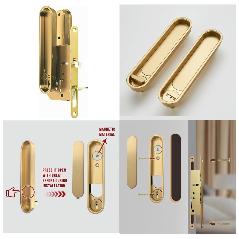 AcxdJnye Pocket Door Lock Hardware with Pull,Invisible Sliding Door Lock Handle, Recessed Door Handle Lock for Furniture Hardware, Gold
