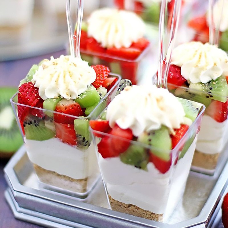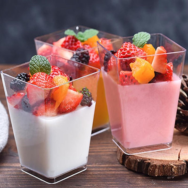 - Great for Dessert or Ingredients - Our square mini clear dessert cups can perfectly present desserts, fruit or ingredients with delicate appearance, delicious and delicious. For example ice cream sundaes, decadent pudding cups with lids, fruit cups, trifle cups, cheesecakes and appetizers.
