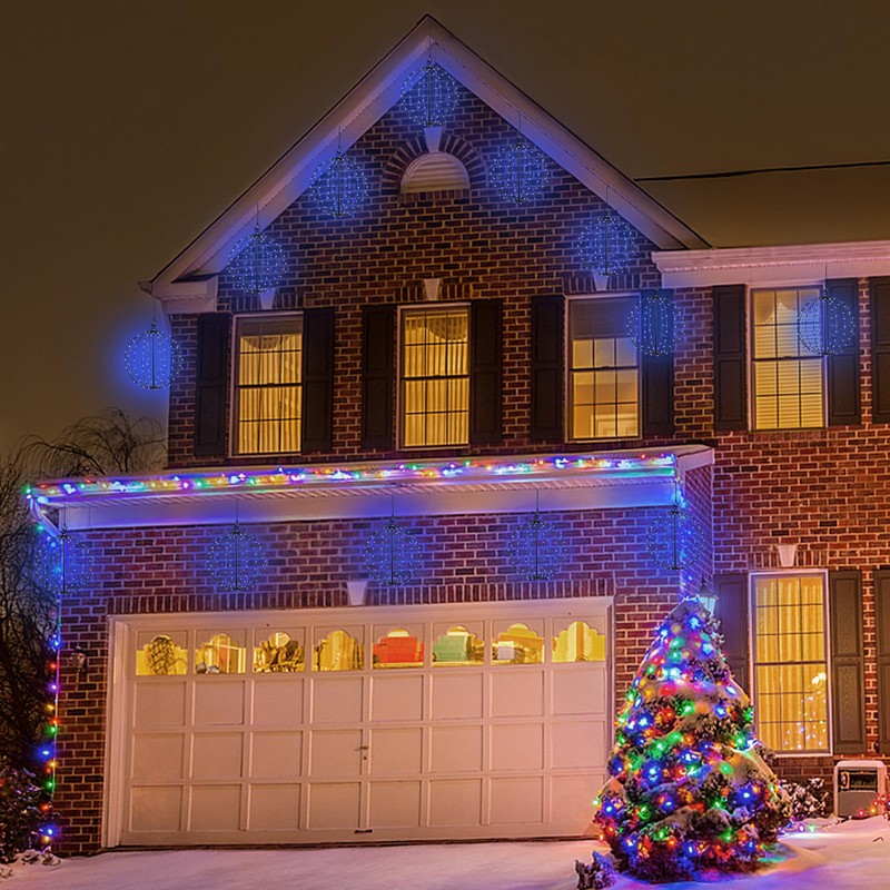 - Solar Spheres lights: The LED ball lights is equipped with 10 iron frames, each with 12 leds, a total of 120 leds. The diameter of the bulb is about 30 cm/ 11.8 in. Equipped with 5 m/ 16.4ft lead wire for you to hang high. The iron frame can be folded for convenient storage and space saving.