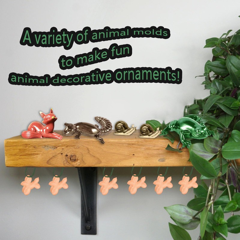 - Animal Resin Mold Set: 7 pieces 3D silicone molds with fox, cat, octopus, frog, lizard, dog, snail. You can use them to diy unique desktop decorations and add a touch of fun to your daily life.