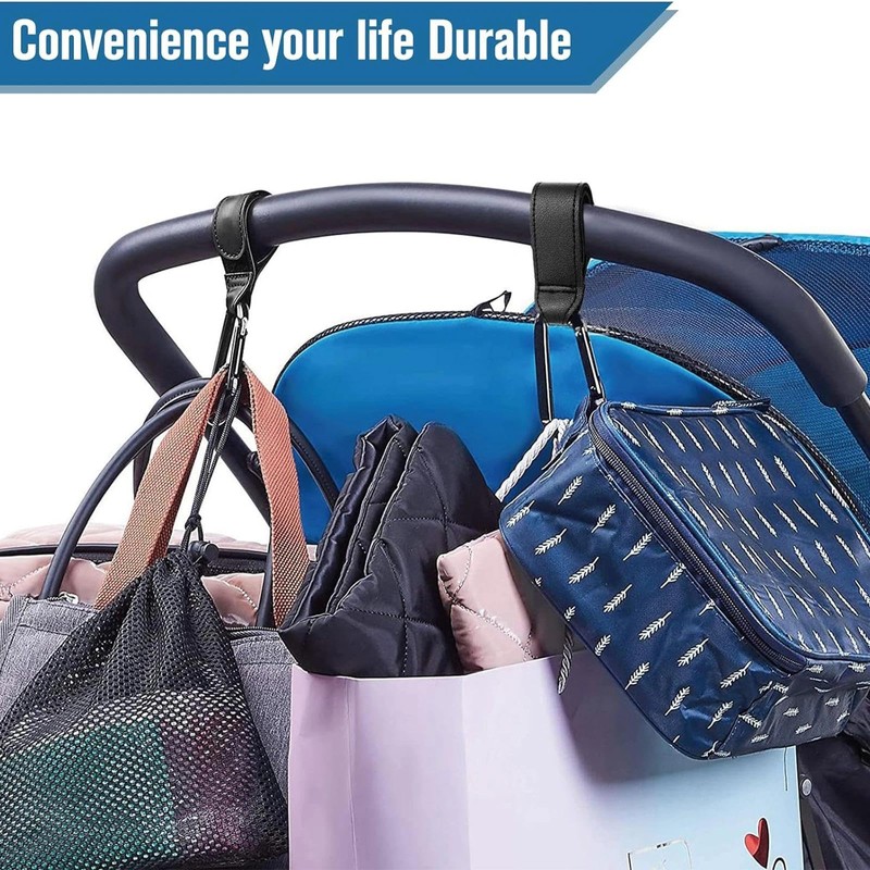 - Pushchair hook set: 2 pram bag hooks made of lightweight, help you carry heavy shopping bags and nappy bags when shopping and walking, to free your hands. In addition, its inner spring can be excited more than 20,00 times and can be used repeatedly.