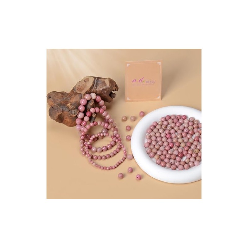 AD Beads Handmade Gemstone Stretch Elastic Bracelet Crystal Healing Reiki Nature's Beauty and Spiritual Essence Unisex (12mm, Rhodochrosite)