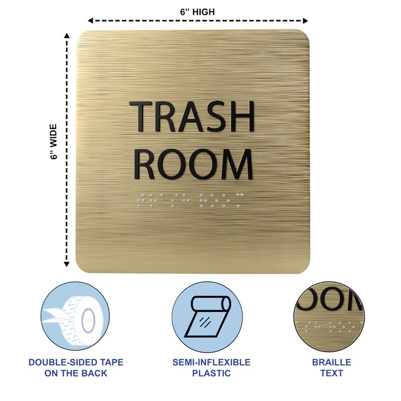 ADA CENTRAL SIGNS - 6" X6" Trash Room Sign - ADA Compliant Tactile Graphics Grade 2 Braille Text Acrylic Wall Signs - Recycling Waste Garbage Bins, Hazardous Waste, Disposal Safety Room Door Sign