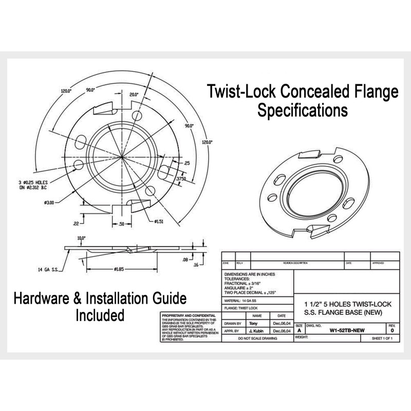 SPECIFICATIONS: Heavy duty SAE 304 stainless steel only. 1-1/2" wall clearance to meet ADA and ANSI Codes. Bar: 18-gauge, 1.25-inch diameter tubing, Flange Covers: 24-gauge, Flange: 16-gauge. NOTE: Grab Bars are only as strong as what they are mounted to. It is imperative to consult with a qualified contractor to ensure you have sufficient backing. Mounting hardware included (#10 x 2" stainless steel wood screws), however we recommend Togglers or WingIts mounting kits when wall studs cannot be located. Includes Installation Guide.