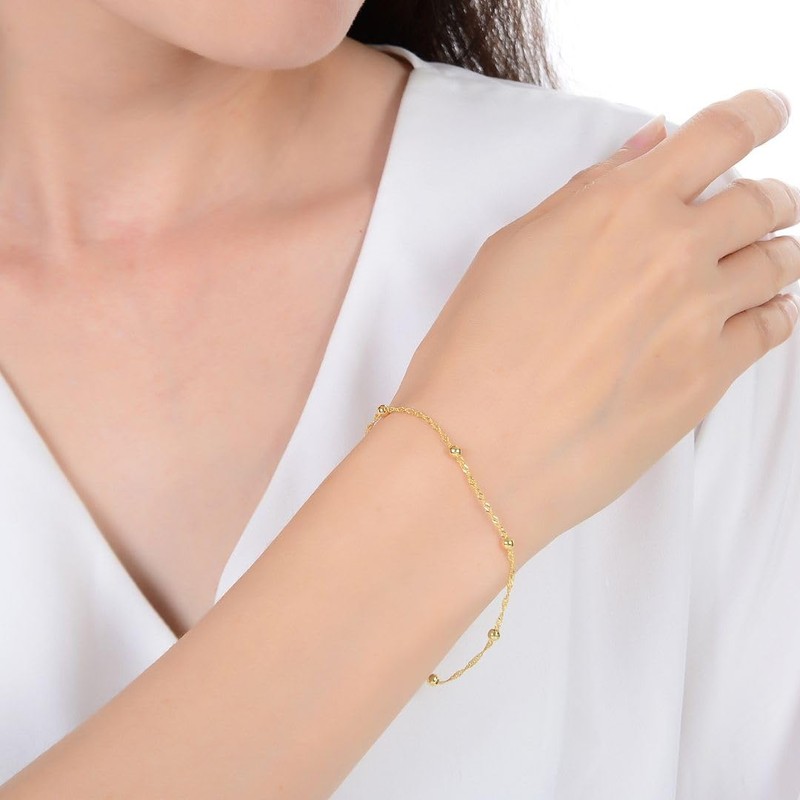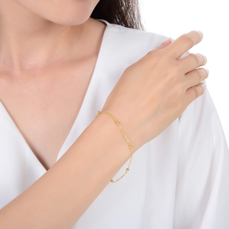 Adabele 1pc Real Gold Plated Sterling Silver Satellite Beaded Singapore Bracelet 7.5 inch Cute Chain 3mm Ball Fine Hypoallergenic Women Jewelry SB-5C