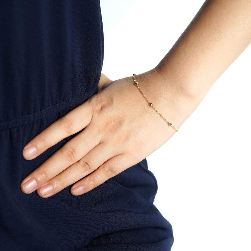 - Chain length: 7.5 inch; Chain width ~ 1.4mm (0.06 inch); the Ball/Bead on the chain is ~ 3mm (0.12 inch) - this is a dainty bracelet, offering cute and elegant look, please make sure this size/style meets your need before placing an order, thank you