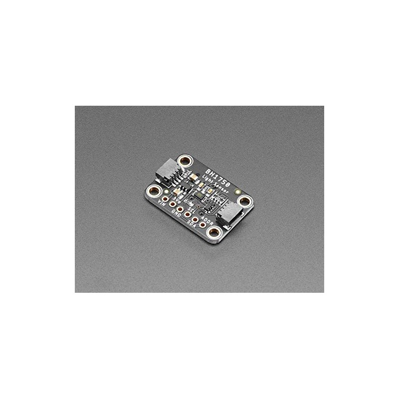 Packed on a PCB in a STEMMA QT form factor, the BH1750 features a voltage regulator and level circuit to use with 3.3V devices such as a Feather M4 or Raspberry Pi or 5V devices such as an Arduino. Instead of working with the small contacts on the sensor, the PCB on which it is packed breaks all pins onto a standard 2.54mm pitch header.