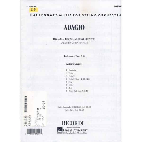 Adagio (String Orchestra) Score Only (Hal Leonard Music for String Orchestra)