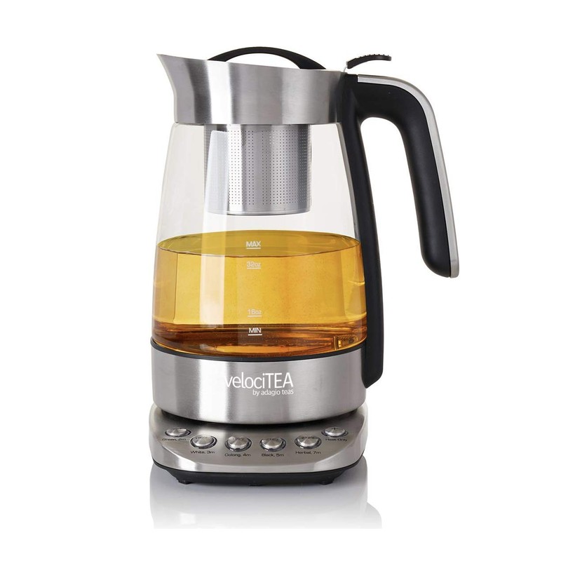 Adagio Teas is proud to welcome 'velociTEA' To our kettle collection. Its ingenious new design pumps water from the base into the infuser basket, where the tea is steeped. Brewed tea filters back down into the kettle at the perfect strength for your chosen variety. When the tea is ready, The kettle will keep it warm for 60 minutes to ensure that your last cup tastes as good as your first. Simply need hot water? Select the "heat only" Button and the kettle will heat water to a temperature of your choice. The infuser basket is dishwasher-safe and easy-to-clean. Redesigned to accommodate for use at high- altitudes.